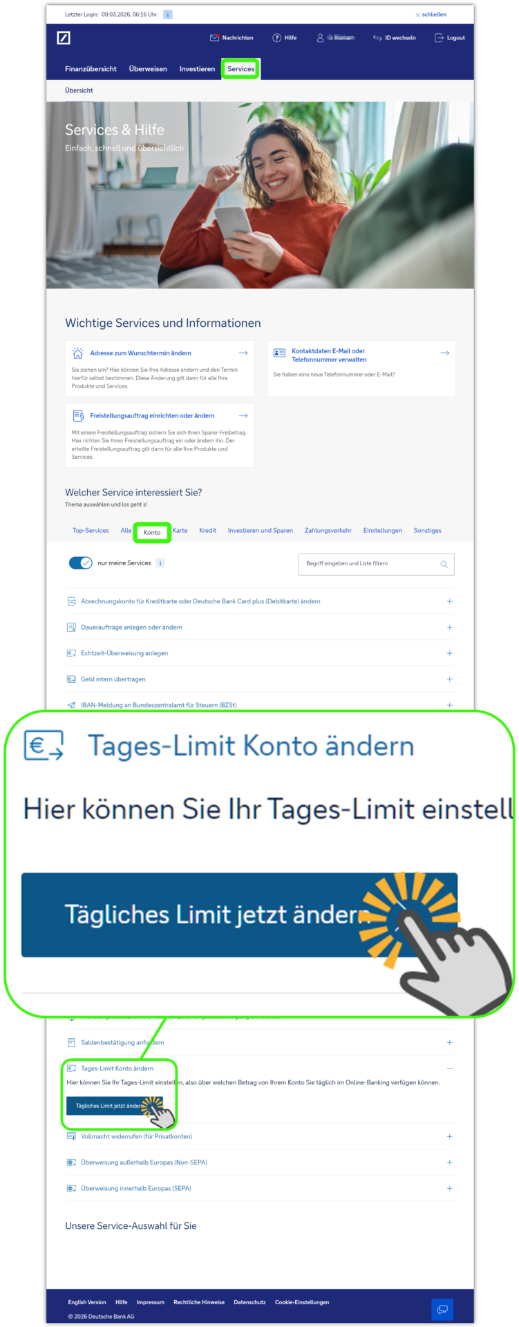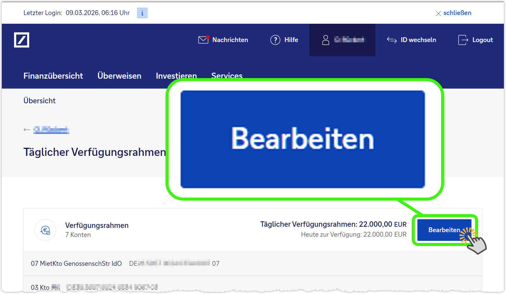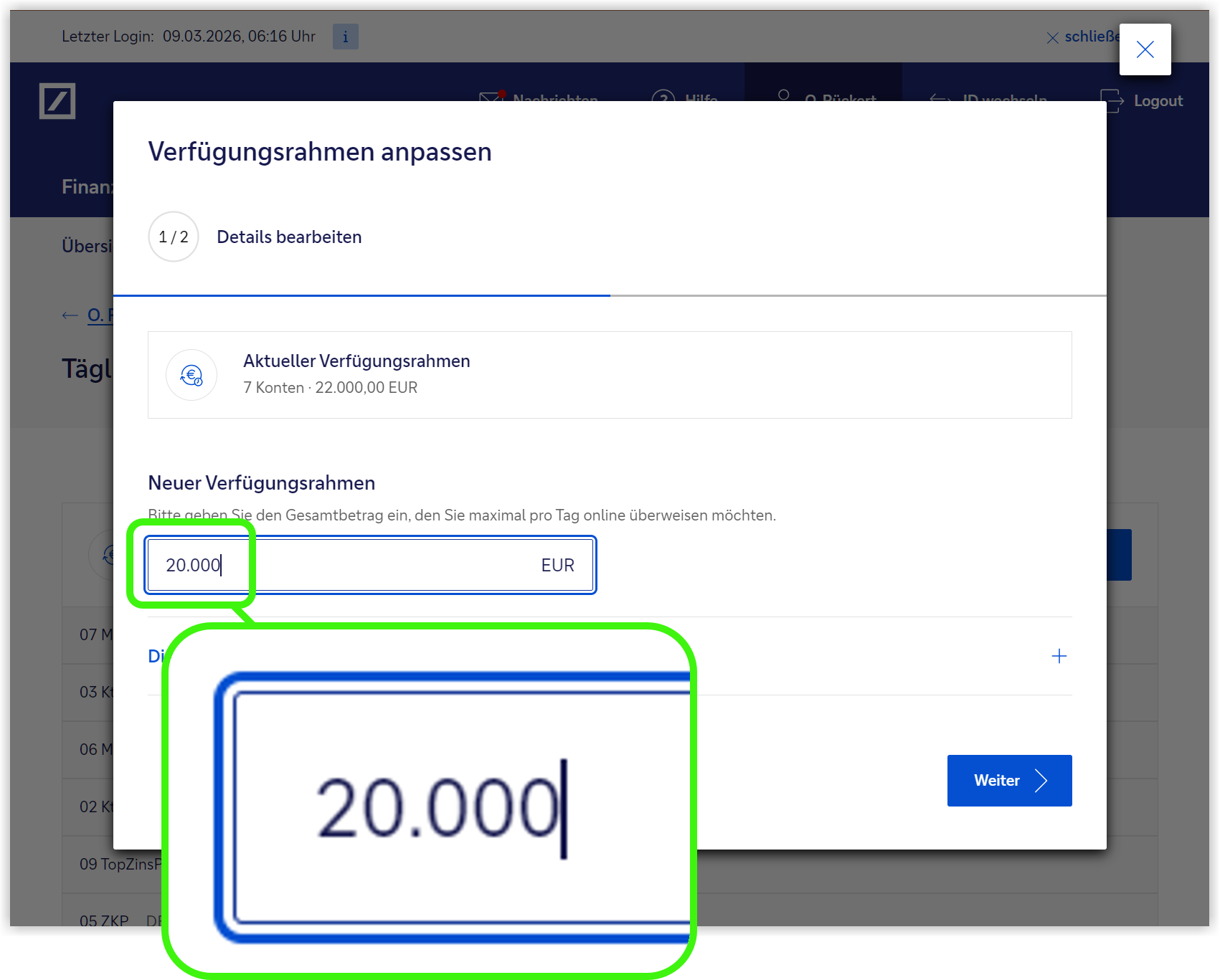Hier zeige ich Dir Schritt für Schritt, wie Du Deinen Tagesüberweisungslimit ändern kannst.